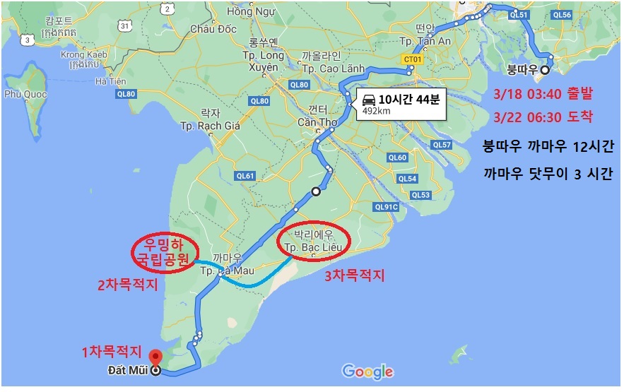 이렇게 해서 내가 여행해 보고 싶었던 까 마우(Ca Mau)는 지우고 다음 여행지를 찾어야지